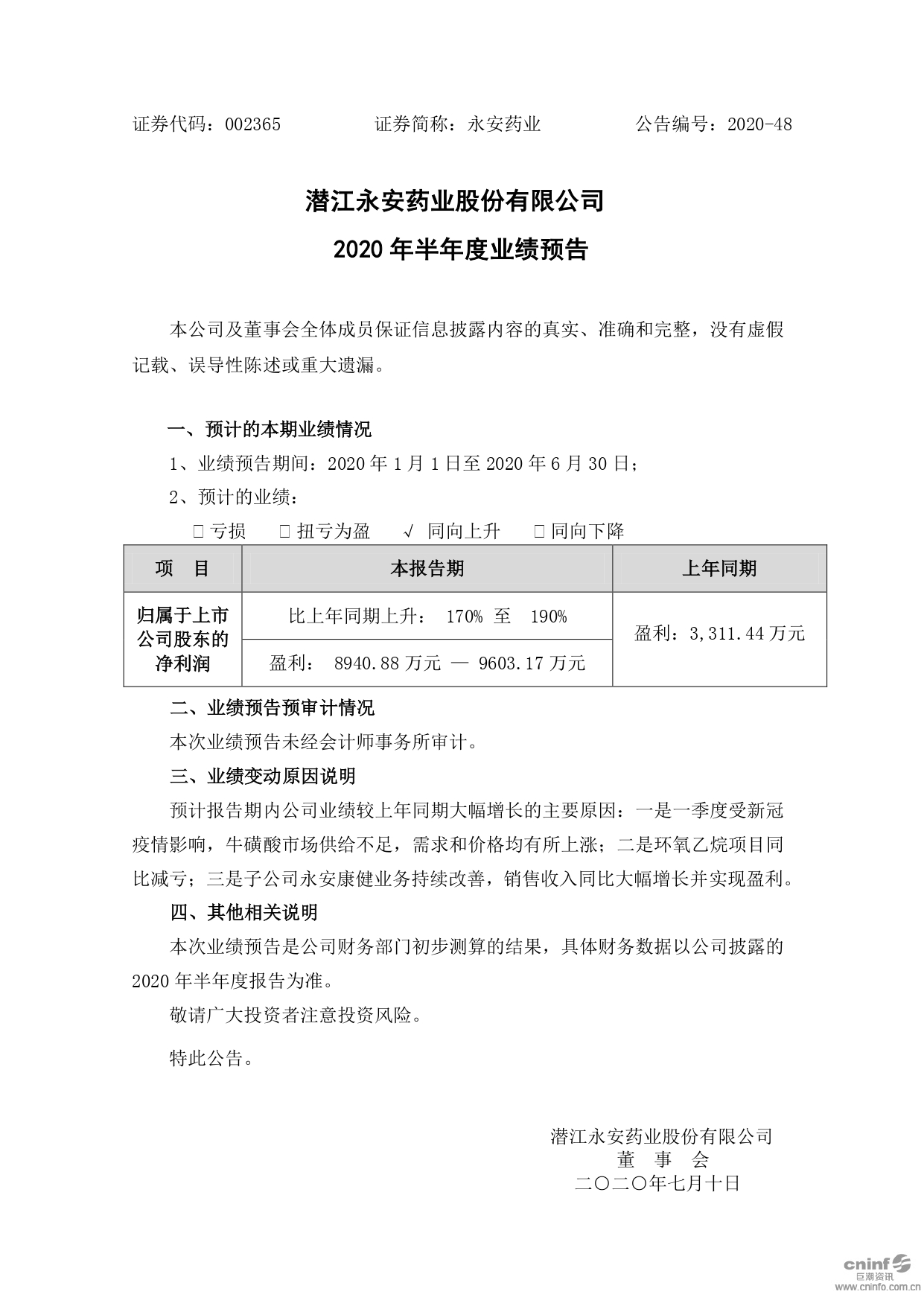 2020年半年度業(yè)績(jī)預(yù)告