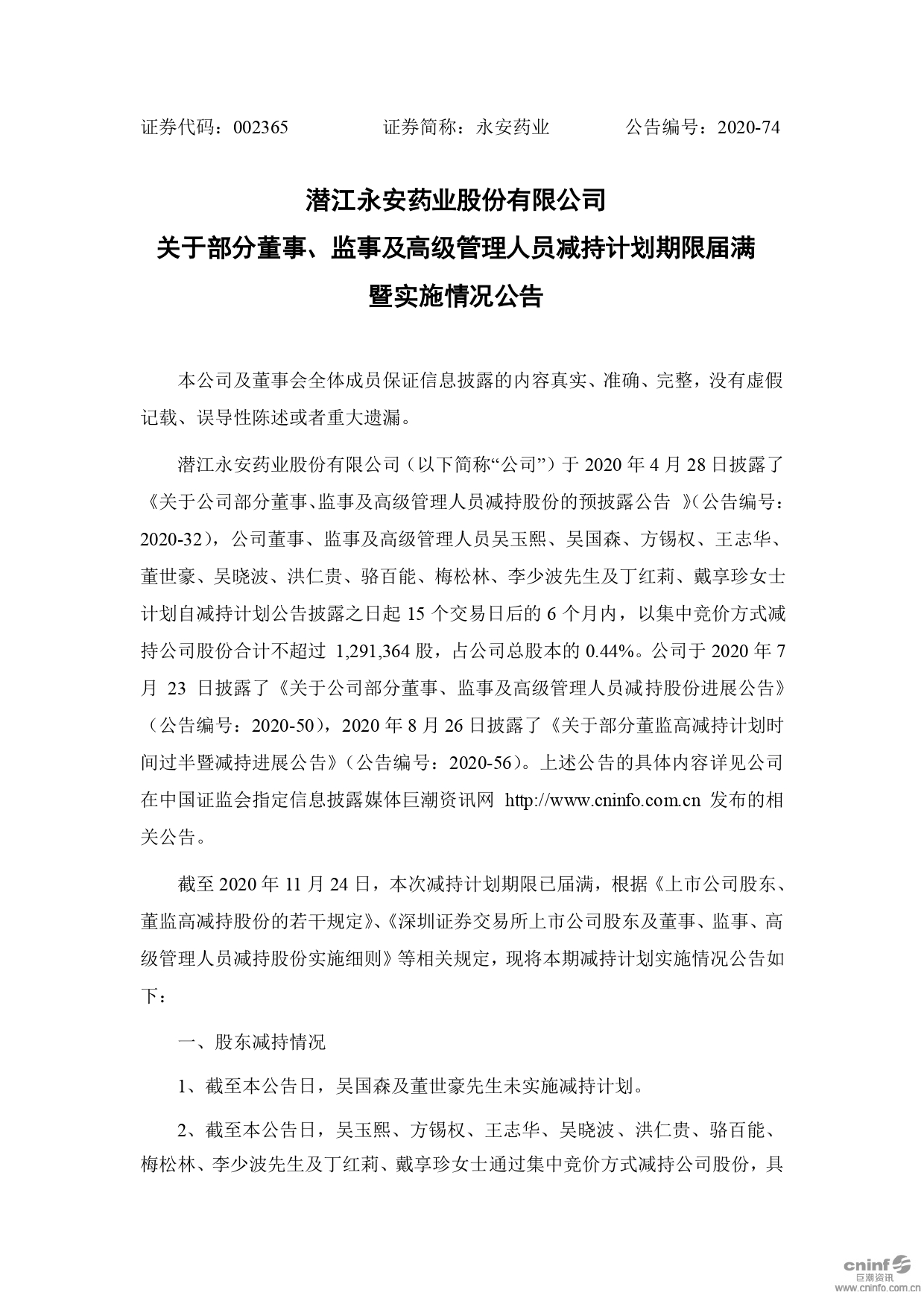 關(guān)于部分董事、監(jiān)事及高級(jí)管理人員減持計(jì)劃期限屆滿暨實(shí)施情況公告