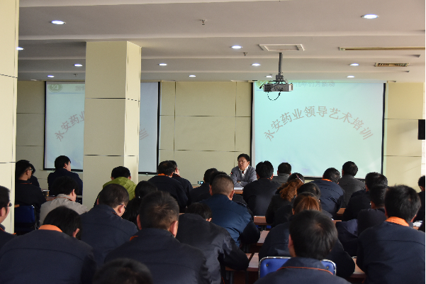2015年11月25日,公司工會(huì)在多媒體電教室組織召開(kāi)了永安藥業(yè)領(lǐng)導(dǎo)藝術(shù)培訓(xùn)講座,公司班組長(zhǎng)以上干部及管理人員130余人參加了授訓(xùn)。董事長(zhǎng)陳勇先生親自授課,他大量引用古今中外的經(jīng)典案例及結(jié)合自身的社會(huì)閱歷,深入淺出的講譯了一名領(lǐng)導(dǎo)者應(yīng)該具備的素養(yǎng)和處事方法。他演講生動(dòng)、精彩不斷,讓大家受益匪淺。
